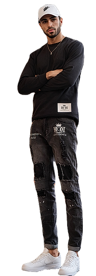 As this sweater is on the basic side, it can be worn in a number of ways. Drip No.1, rock this sweater with our limited edition Clout Dominium logo design ripped jeans as seen worn by our models loose style. Remember they can also be worn fitted for the athletic type build. Drip No.2, wear this sweater with a plain pair of black joggers or shorts. Drip No. 3, cop it with a plain pair of our skinny Clout Dominium black jeans soon to drop! Finish the look with black or white plain low tops, J4' Black Cats/Oreos, J1 high tops as worn by our models, or a pair of black all black Huaraches.